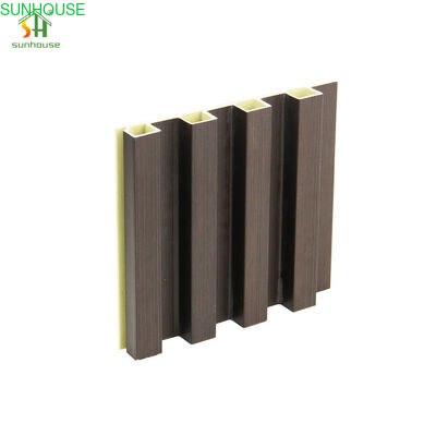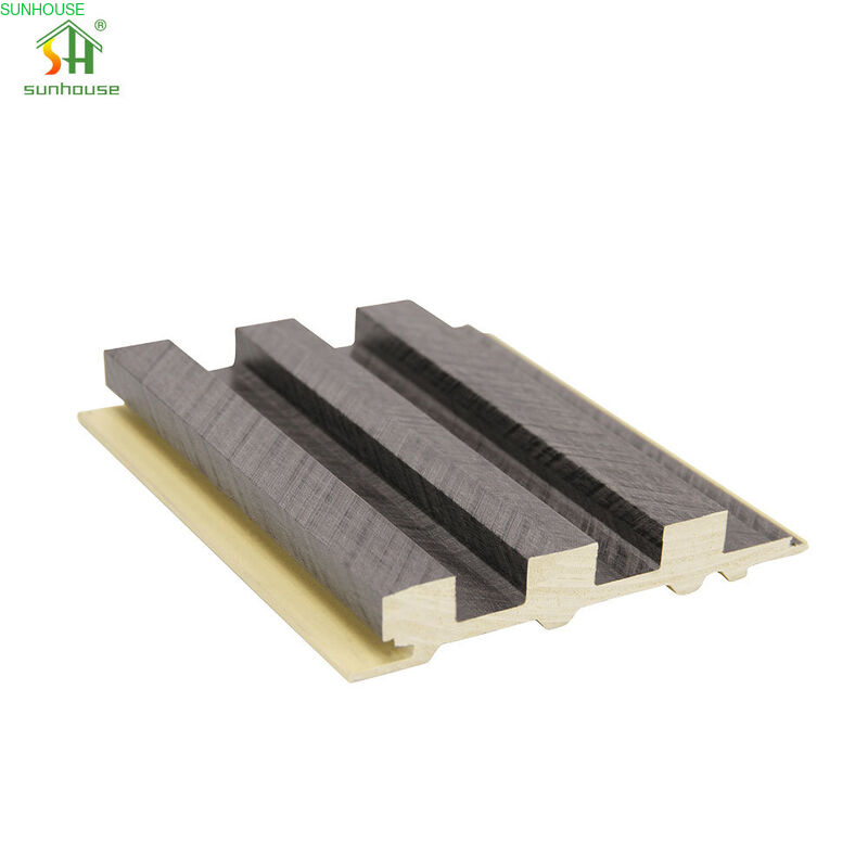 Proses manufaktur co-extrusion menghasilkan panel ini dalam dua lapisan simultan: inti komposit HDPE struktural dan tepung kayu memberikan kekakuan dan stabilitas dimensi, sementara lapisan penutup luar yang diformulasikan secara terpisah — diterapkan dalam lintasan ekstrusi yang sama — menyediakan permukaan akhir. Lapisan penutup ini membawa konsentrasi pigmen warna dan aditif aktif permukaan yang lebih tinggi daripada inti, menghasilkan permukaan yang lebih padat dan lebih tahan gores daripada panel WPC ekstrusi tunggal standar. Ikatan antara inti dan penutup terbentuk selama ekstrusi pada tingkat molekuler, menghilangkan risiko delaminasi yang terkait dengan papan ekstrusi tunggal yang dibungkus film atau dipernis.